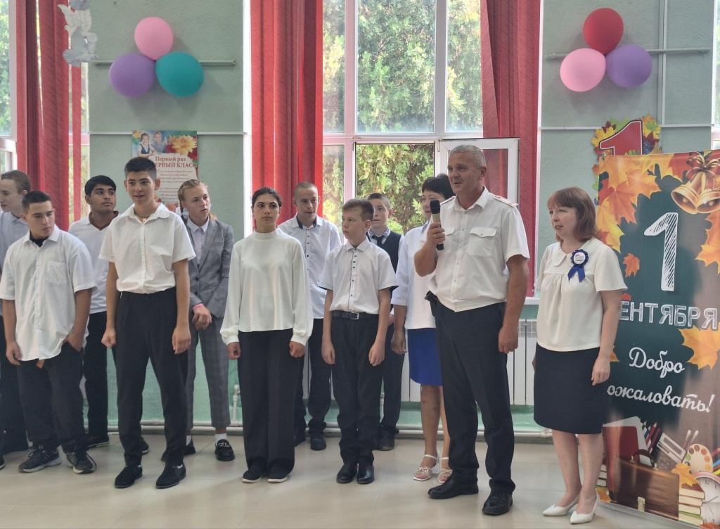 С напутственными словами ко всем присутствующим обратились директор школы — Лучшева Г.А. и наш шеф с Отдела МВД России по Темрюкскому району — Клещ И.В. Они поздравили обучающихся школы с новым учебным годом, отметив, что учение — нелегкий, но радостный и увлекательный труд. Пусть новый учебный год станет для всех ярким и плодотворным, пусть будет наполнен творчеством, интересным и полезным общением, духовно, интеллектуально обогатит и ребят, и их педагогов.