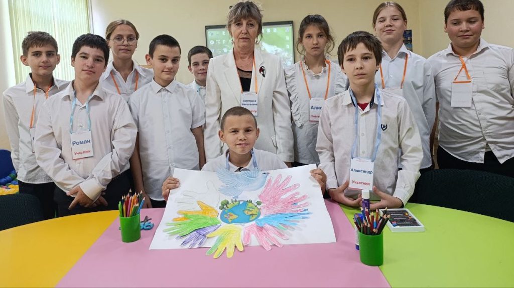 В завершении мероприятия девочки и мальчики сделали коллективный плакат о мире.
